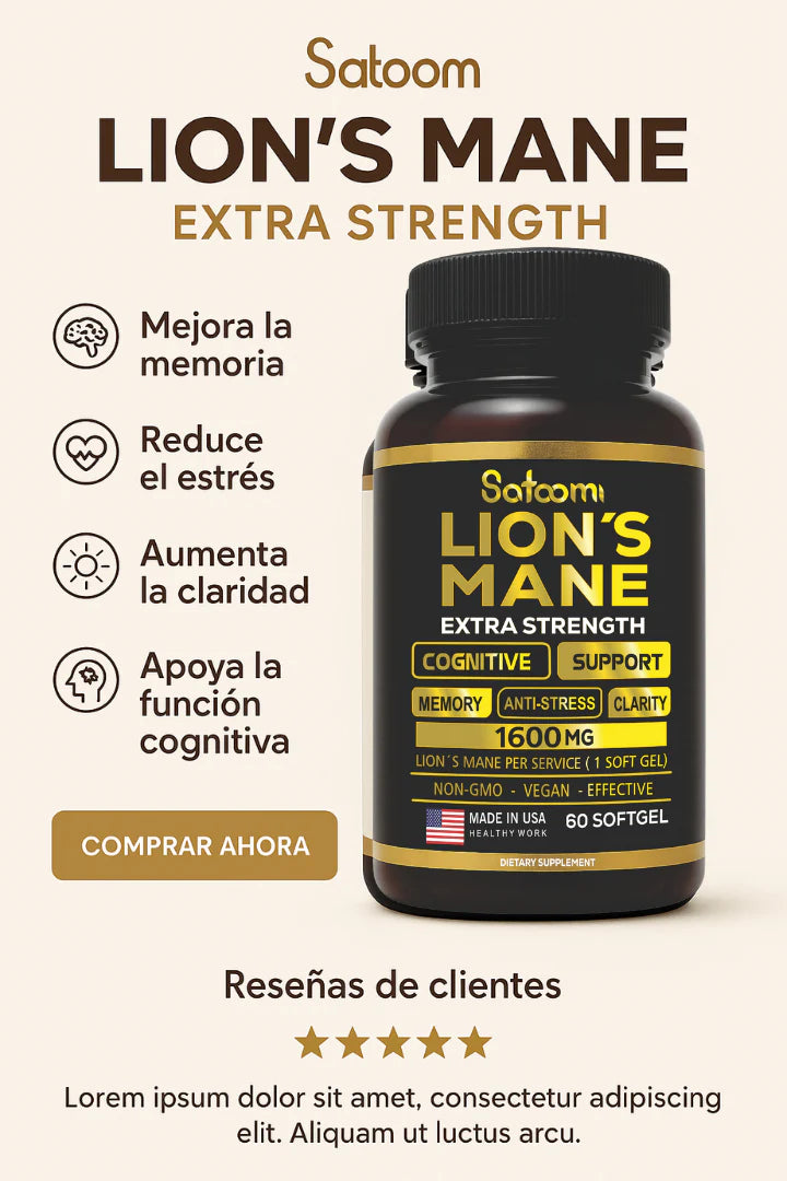 Melena de León de Satoomi combina 1600 mg de extracto de alta pureza en un formato fácil de tomar. Ideal para estudiantes, emprendedores y personas que desean más claridad mental y menos estrés.